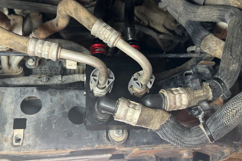 CNC billet thermostatic adapter plate replaces the fragile factory cooler and ensures optimal operating temperature